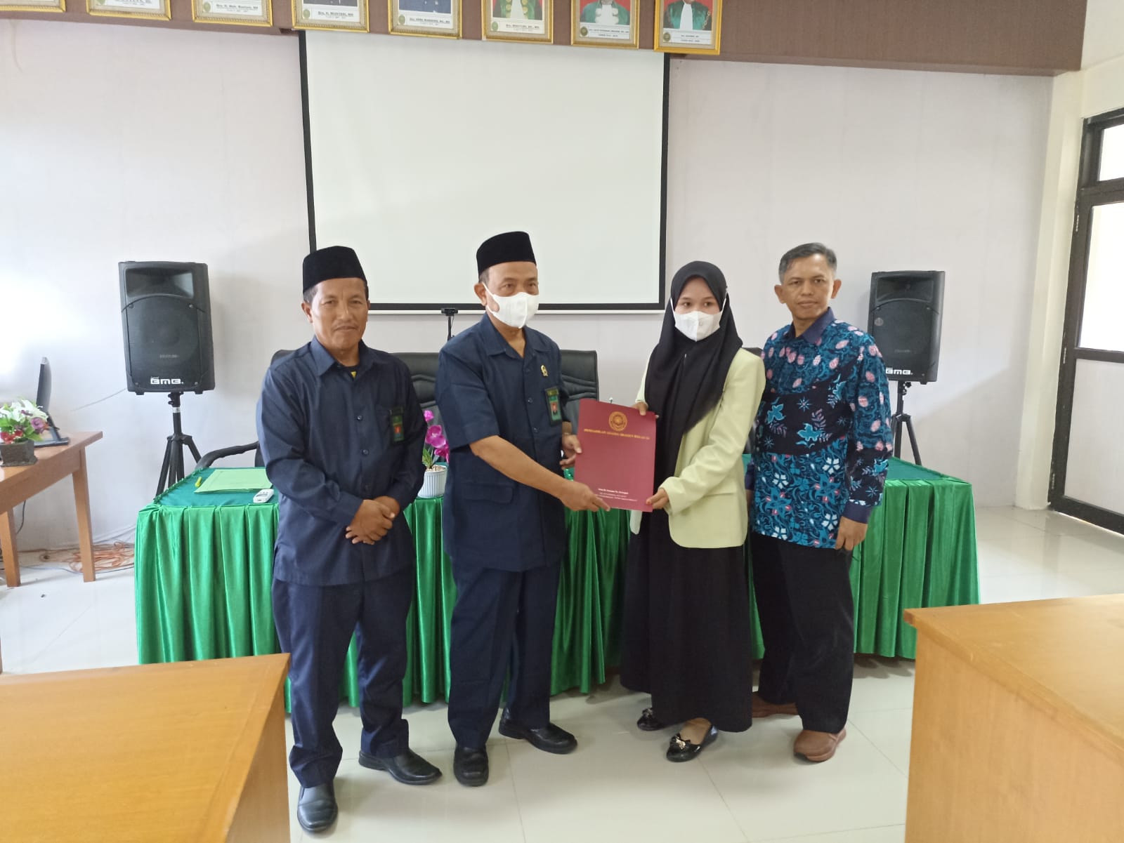 Senin, 22 Agustus 2022 , Ketua Pengadilan Agama Sragen Drs. Lanjarto, M.H., beserta Hakim Drs. Khoerun, M.H., melepas 8 mahasiswi magang dari Fakultas Syariah Program Studi Hukum Keluarga Islam (HKI), Hukum Ekonomi Syariah (HES), dan Hukum Tata Negara (HTN) IAIN Salatiga yang telah melaksanakan magang di Pengadilan Agama Sragen selama 1 bulan. Didampingi oleh Dosen Pembimbing Lapangan, Farkhani, S.H.I, M.H., acara tersebut dimulai pada pukul 08.30 WIB di ruang media center PA Sragen dan dipandu oleh pembawa acara Setya Mahanani, S.H.