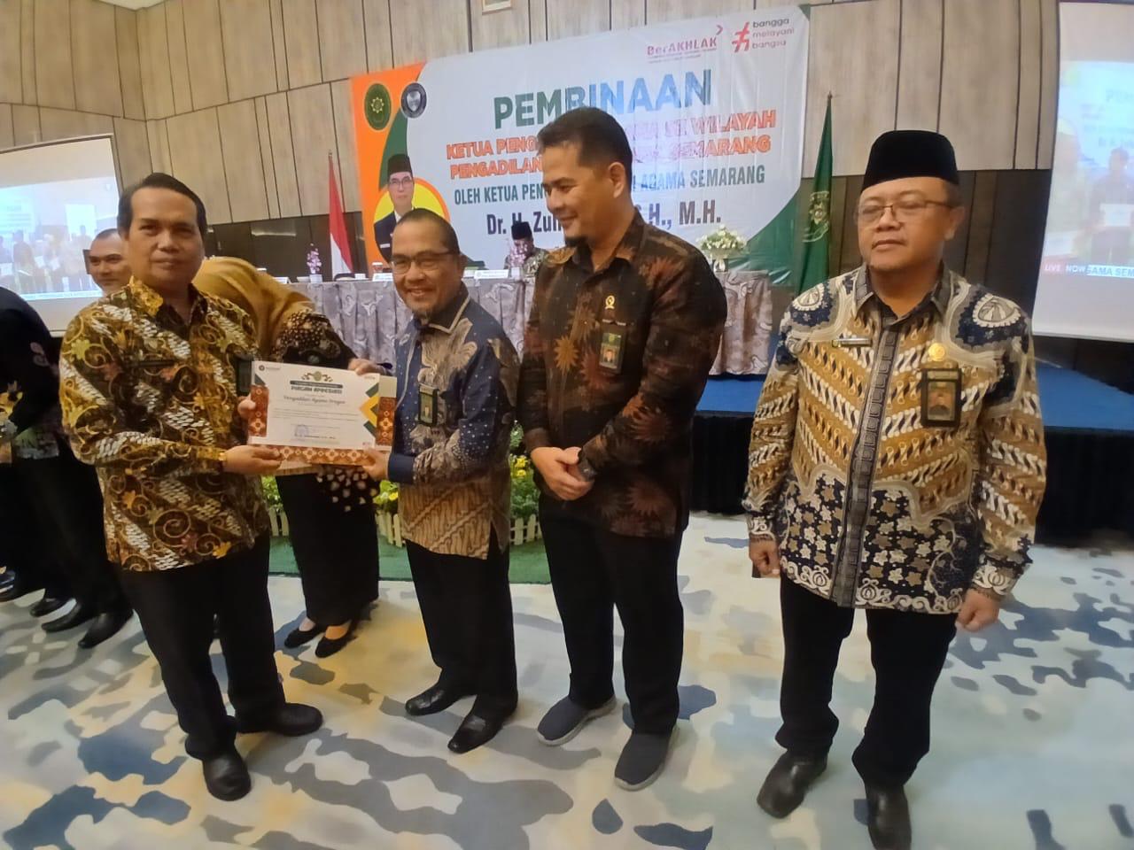 Ketua Pengadilan Agama Sragen, Drs. H. Palatua, S.H., M.H.I menghadiri pembinaan yangg dilaksanakan PTA Semarang berlangsung pada hari Kamis-Jumat, 29-30 Agustus 2024 di hotel Azana Style Guest Kebumen yangg dihadiri para Ketua Pengadilan Agama wilayah koodinasi PTA Semarang. Dalam kesempatan tersebut PTA Semarang menyerahkan penghargaan kepada Satuan kerja yang berprestasi baik dari intern maupun ekstern. Alhamdulillah PA Sragen termasuk satuan kerja yang mendapatkan penghargaan berupa satker terbaik 3 dalam pengelolaan keuangan dan penyusunan dan penyampaian Laporan penanggung jawaban semester I Tahun 2024. Ketua Pengadilan Agama Sragen, Drs. H. Palatua, S.H., M.H.I mengucapkan terima kasih kepada tim kesekretariatan Pengadilan Agama Sragen atas kerja kerasnya, semoga kedepan lebih baik lagi.