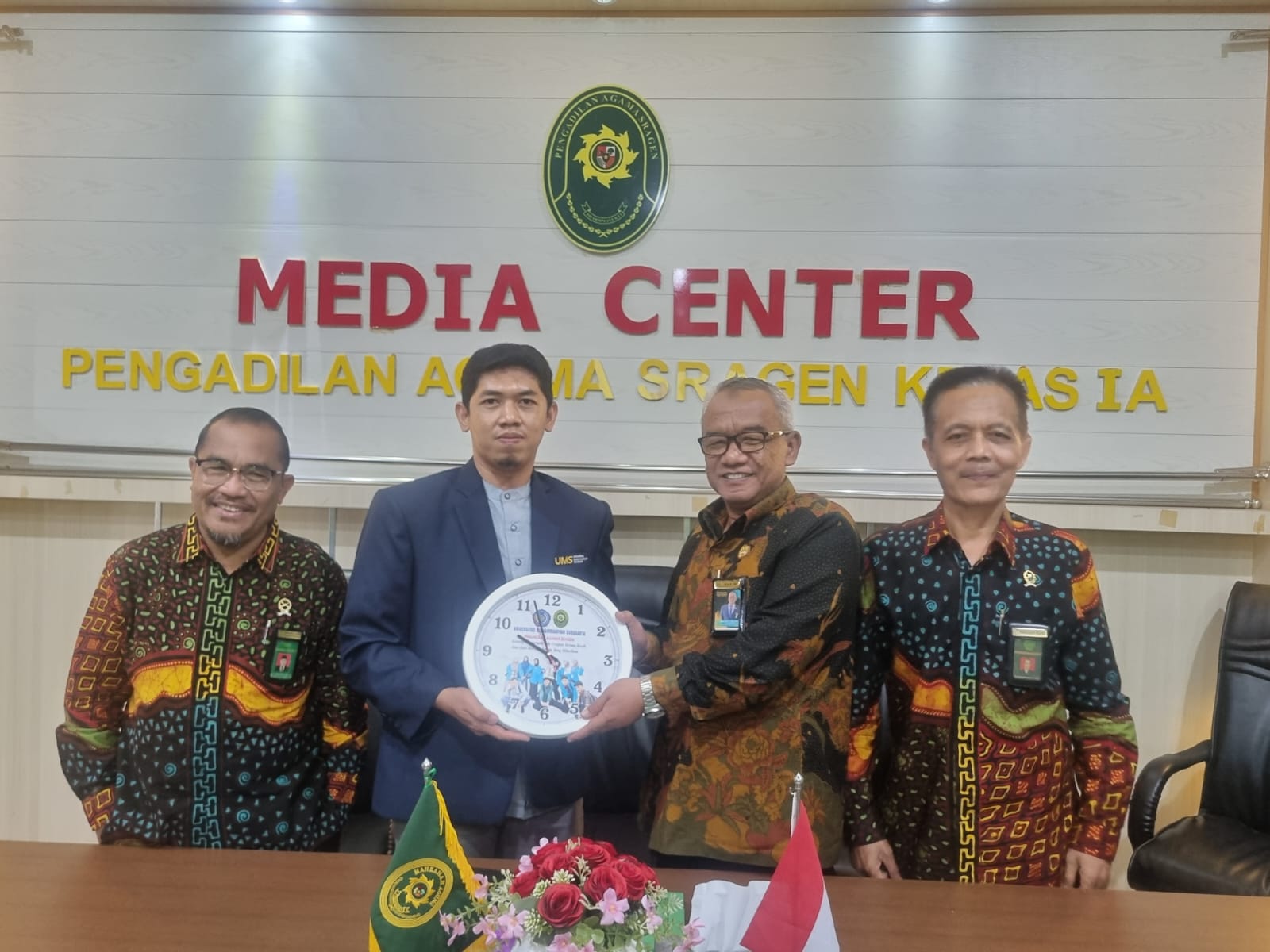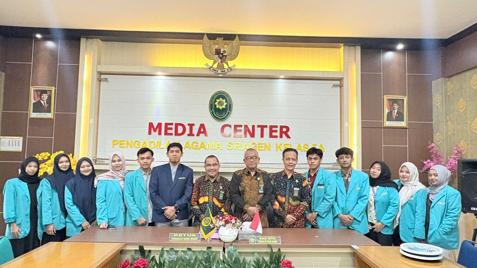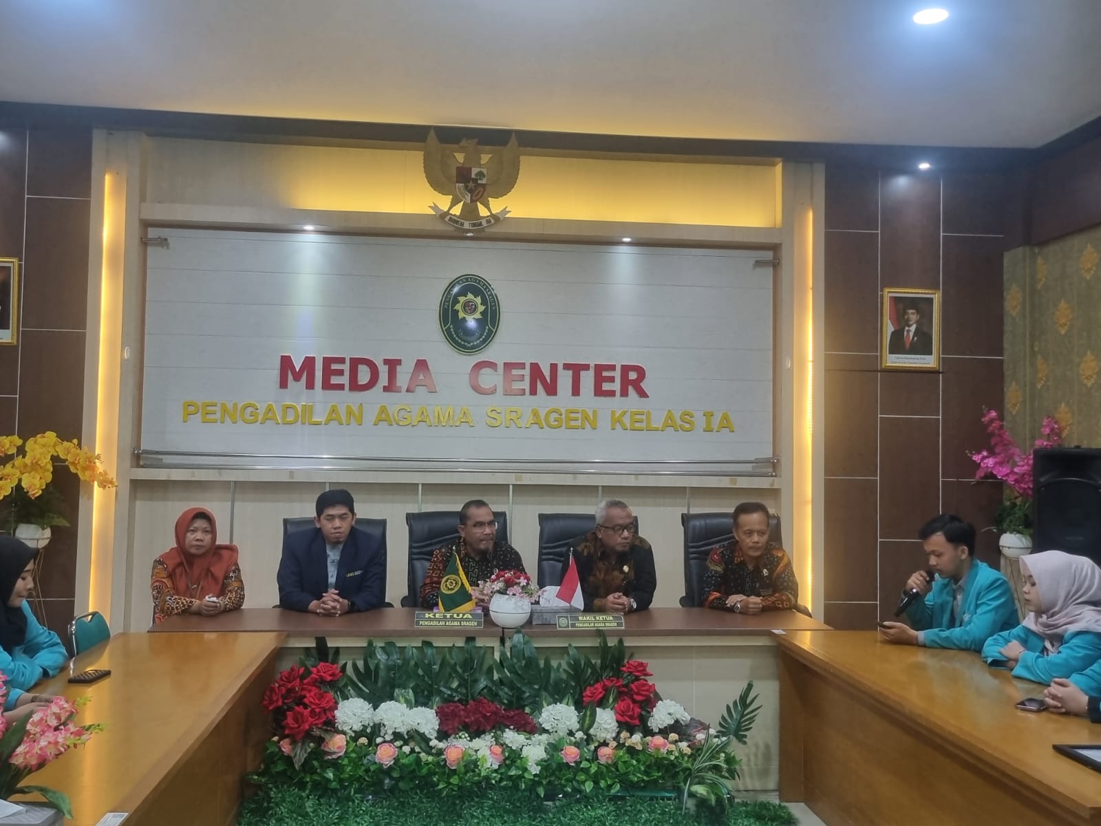 Jumat, 31 Oktober 2025 Ketua Pengadilan Agama Sragen Bapak Drs. Palatua, S.H., M.H.I, wakil Ketua Bapak Abdul Rouf, S.Ag., M.H. beserta Hakim Pembimbing Mahasiswa Magang Bapak Drs. Muhammadun, S.H. dan Ibu Dra. Muhlisoh, M.H. melepas 22 mahasiswa dari Fakultas Agama Islam, Prodi Hukum Ekonomi Syari’ah (HES) Universitas Muhammadiyah Surakarta yang telah melaksanakan magang di Pengadilan Agama Sragen pada periode September dan Oktober 2025. Acara juga dihadiri oleh Dosen Pembimbing Lapangan Universitas Muhammadiyah Surakarta, Bapak DR. Triyono Adi Saputro, S.H., M.H. di Ruang Media Center Pengadilan Agama Sragen.